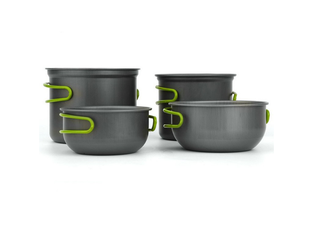 Компактний похідний посуд складається з чотирьох посудів - двох великих котелків і двох маленьких котелків.