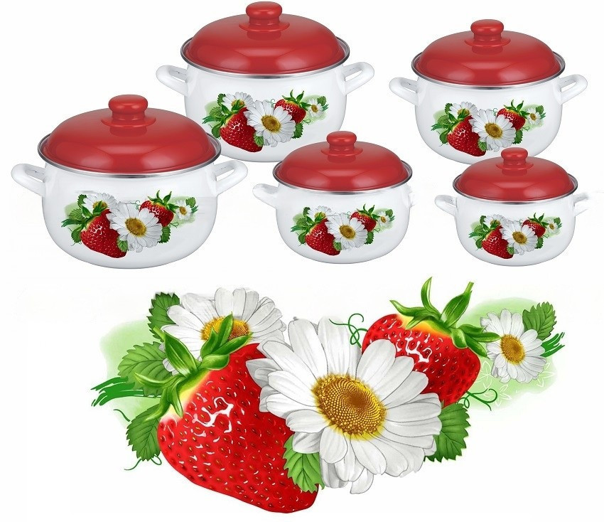 Набір каструль з емальованим покриттям Edenberg EB-1875 5 каструль (2.6, 3.5, 4.5, 5.6 і 6.0 л) з кришками